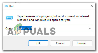 - Press Windows key + R to open a Run dialog box. Type ‘appwiz.cpl’ in the text box and press Enter to open the Programs and Features menu.
