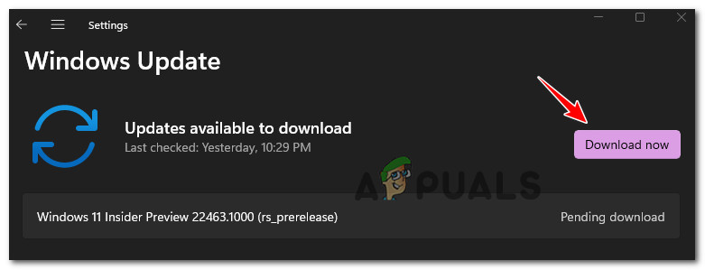 Downloading the Windows Update Note: If no updates are pending, click Check for updates to run a scan.