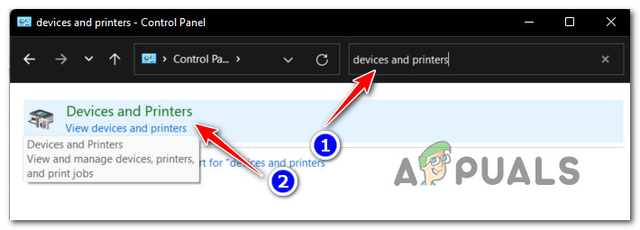 Open the classic Control Panel interface - In the Control Panel interface, use the search functionality (top-right corner) to search for ‘devices and printers’.