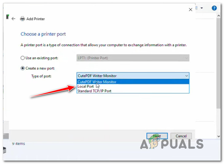 - Select Create a new port, then choose Local Port from the drop-down menu.