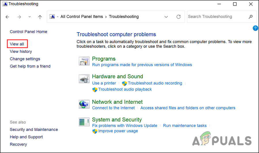 Click on the View all option - You should see a list of troubleshooters available on the system. Locate the System Maintenance troubleshooter and double-click on it.