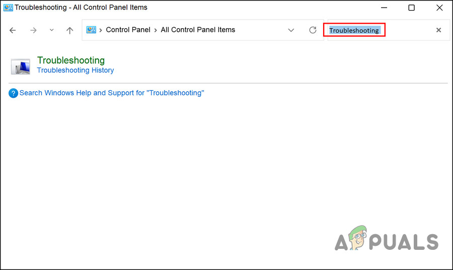 - In the following window, type Troubleshooting in the search bar and click Enter.