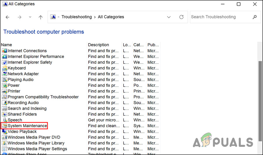 If running the SFC and DISM commands did not fix the problem for you, then we suggest the next thing you do is run the System Maintenance troubleshooter, which is another similar utility that comes built-into Windows.