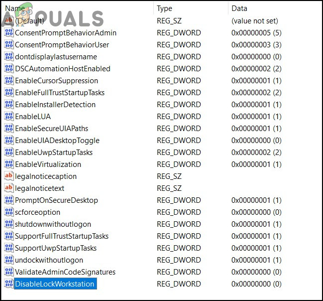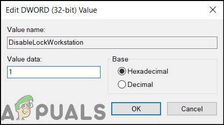 DisableLockWorkstation - Right-click on DisableLockWorkstation and click on Modify. Then, set the value to 1. Click OK.