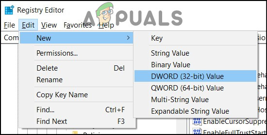 Enter the value in the address bar - From the Edit menu select New -> DWORD (32-bit) value.