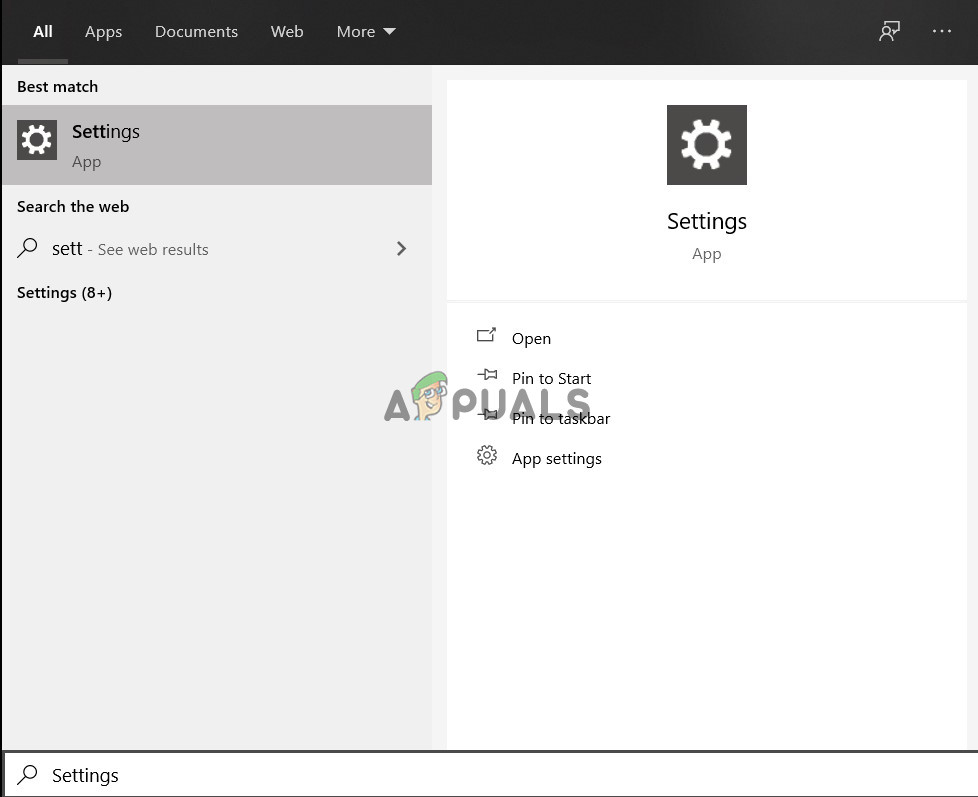 - First, press the Windows key and type Settings.