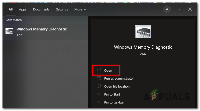 - Click on the “Windows Memory Diagnostic” tool from the search results to launch it.