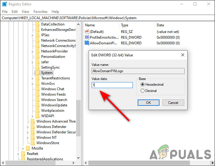Create an AllowDomainPINLogo value - Rename this newly created value as AllowDomainPINLogo and double-click on it.