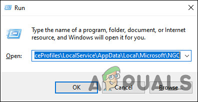 - In the text field of the dialog box, type ‘C:\Windows\ServiceProfiles\LocalService\AppData\Local\Microsoft\NGC’ and hit OK.