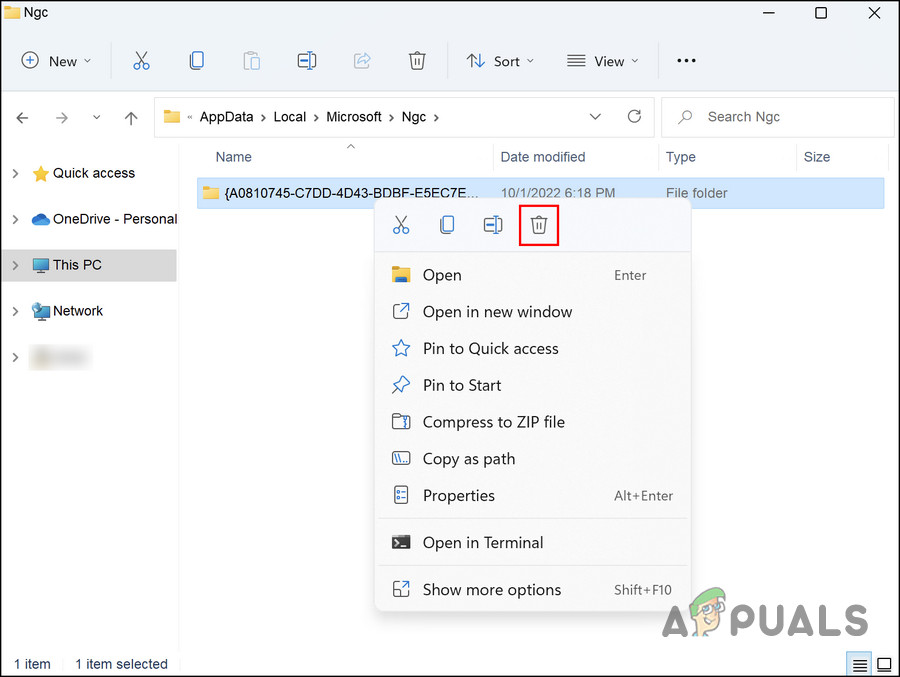 The first thing that we recommend you do is delete the contents of the NGC folder, which stores all the information regarding Windows PIN settings. There is a chance that the information in this folder has become corrupt, leading to the error at hand.