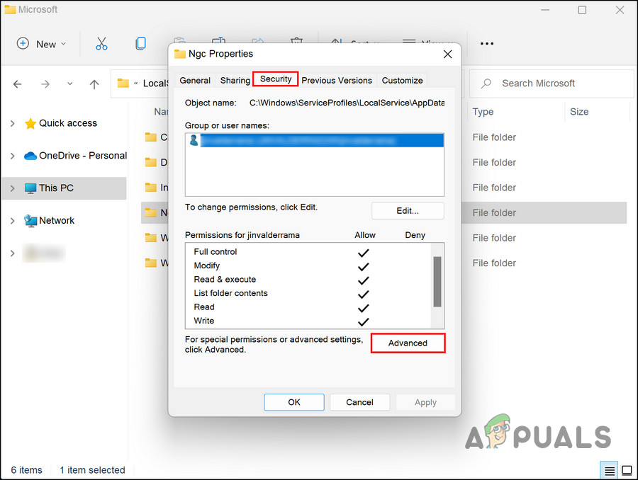 Delete the NGC folder - If you cannot access the NGC folder, right-click on it and choose Properties from the context menu.