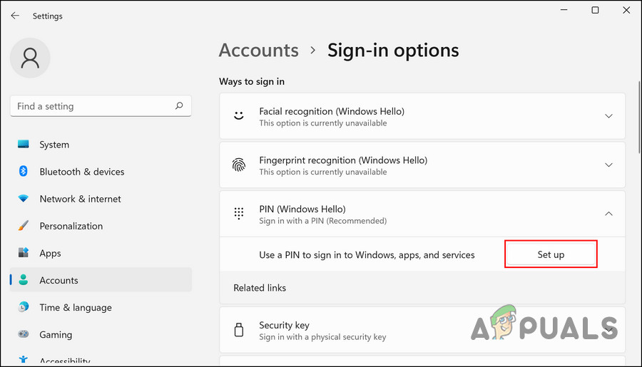 Access the sign-in options in Windows 11 - Click on Windows Hello PIN and choose Set up.