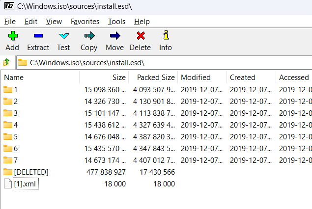 - Double-click install.esd to view its contents. You will find folders designated for each version of Windows, such as Windows 10 Home, Windows 10 Pro, etc.