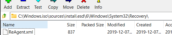Opening the Recovery Folder in Install.esd - In the Recovery folder, locate the ‘ReAgent.xml‘ and ‘Winre.wim‘ files.