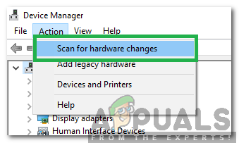 Selecting “Scan for Hardware Changes” from the list - Check to see if the issue persists.
