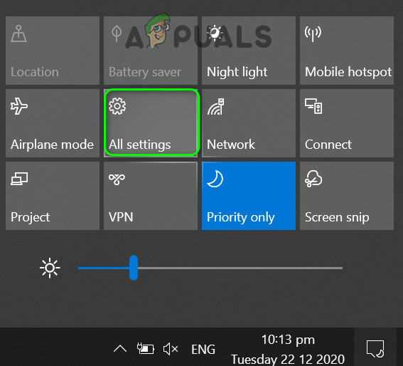 Check for the Snip & Sketch Screenshot in the System’s Notifications - If the screenshot is not shown in the notifications, click on the Action Center icon and select All Settings.