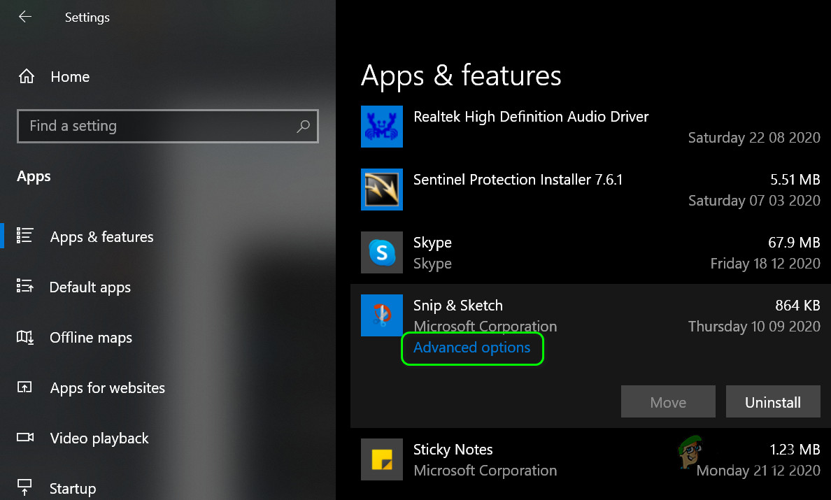 Many users tend to use automated scripts or applications to remove Windows built-in Apps or features. You may encounter the error at hand if the Snip & Sketch application was removed from your system (either intentionally or unintentionally by an automated script or application). In this case, installing the Snip & Sketch application from the Microsoft Store may solve the problem.