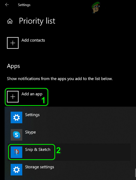 Customize Your Priority List for the Focus Assist - If the application is not there, then click on Add an App, and in the list of apps shown, add Snip & Sketch.