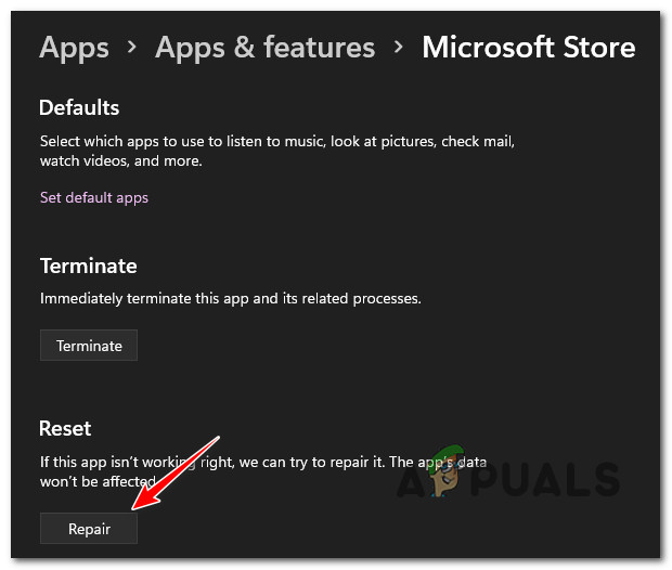 Repairing the Windows Store component Note: This operation will scan all system files and dependencies belonging to the Microsoft Store component and figure out whether any replace any file corruption with healthy file equivalents.