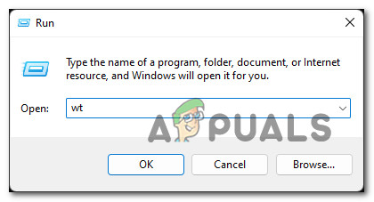 - Press Windows key + R to open up a Run dialog box. Next, type ‘wt’ and press Ctrl + Shift + Enter to open up a Windows Terminal window with admin access.