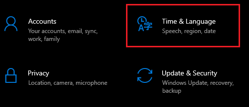 - Press the Win + I key to open Settings, then go for the Time and Language option.