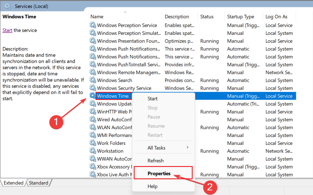 The Windows Time Services might be misconfigured or corrupted. Giving it a restart ensures it is set with the optimal settings for accurate time synchronization.