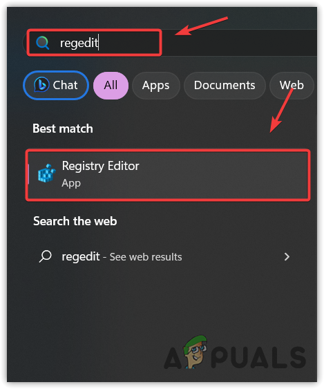 - Open the Start Menu and type regedit.