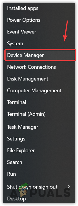 - Right-click the Start Menu button and select Device Manager to open it.