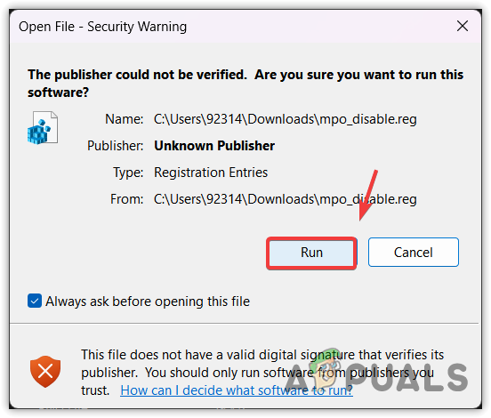 - Download the Disable MPO registry file through the link.