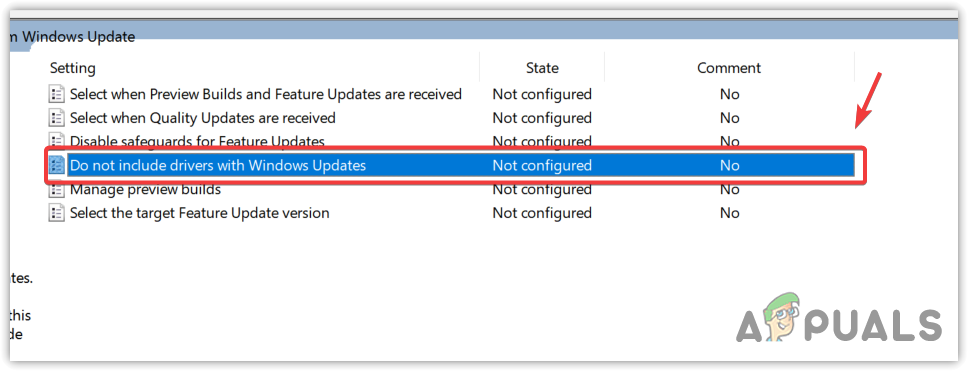 Computer Configuration > Administrative Templates > Windows Components > Windows Update > Manage updates offered from Windows Update. - In the right pane, double-click the Do not include drivers with Windows update.