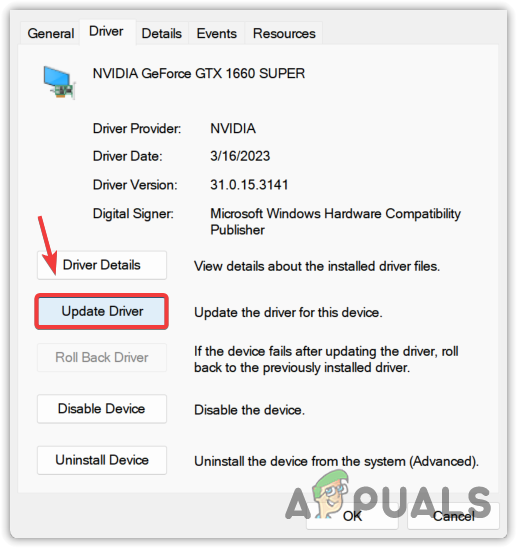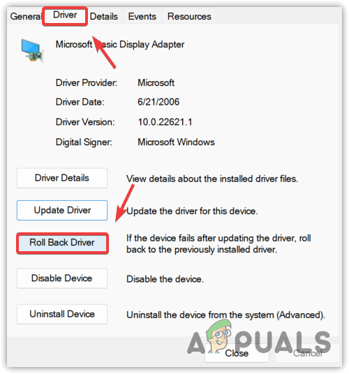 - If the Roll Back Driver option is disabled, then click Update driver.