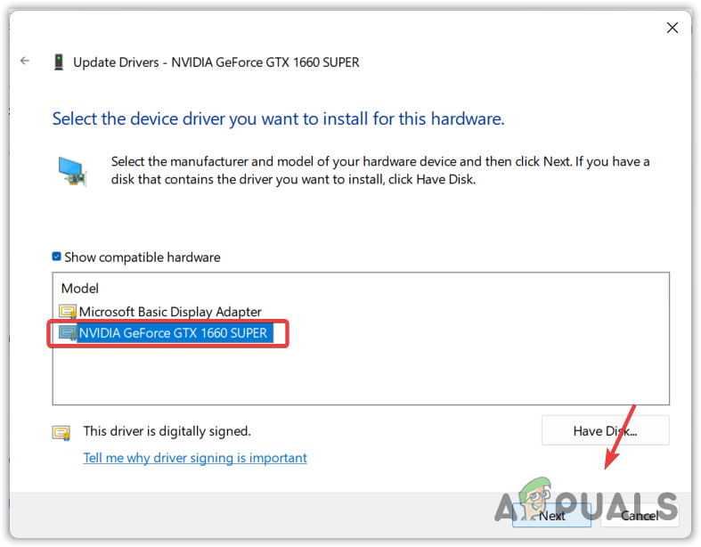- Then, click Next to install the driver. If that does not work for you, move on to the following methods.