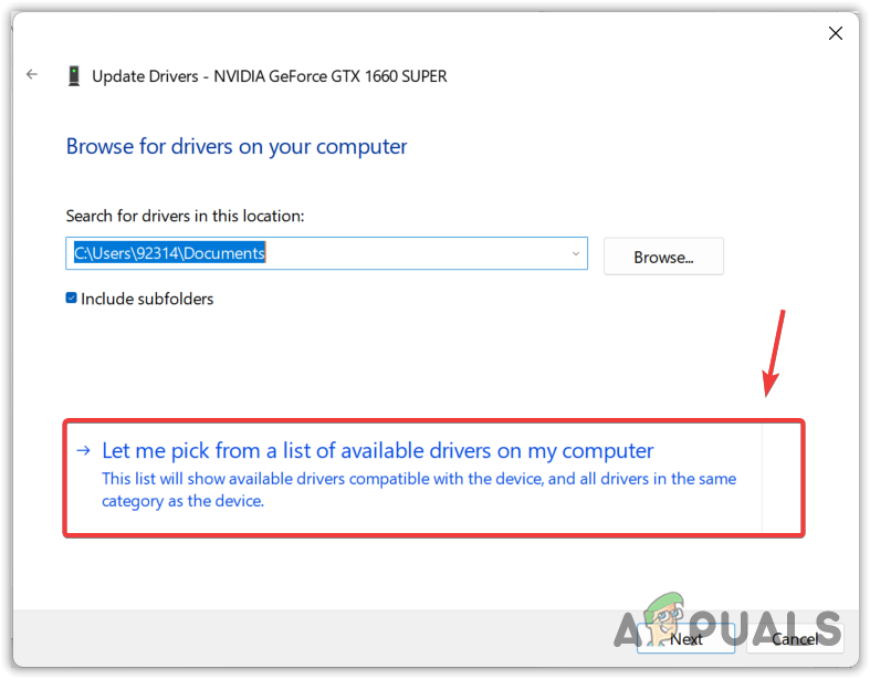 - Select Browse my computer for drivers and select Let me pick from a list of available drivers on my computer.