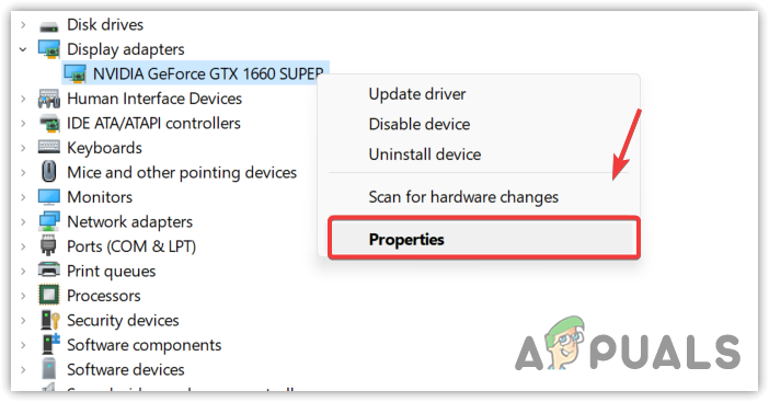 - Select Properties and go to Driver.