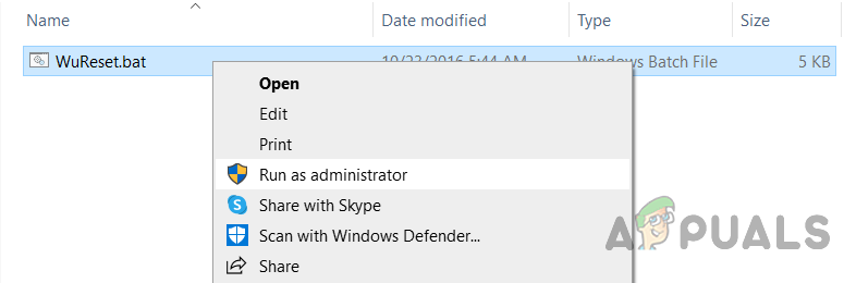 Run WuReset batch file as administrator - Wait for the execution to be completed