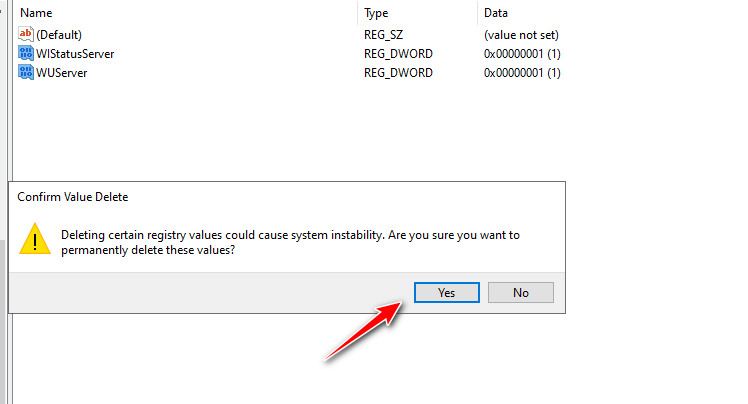 5. Remove WUServer and WIStatusServer Registry Entries (Optional)