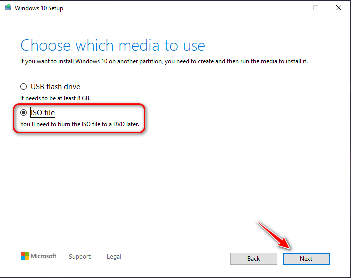 - Choose which media to use! As we are going with the ISO file because we will proceed without a USB pen drive, click on next again.