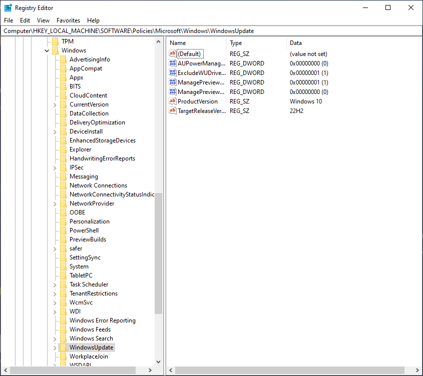HKEY_LOCAL_MACHINE\SOFTWARE\Policies\Microsoft\Windows\WindowsUpdate