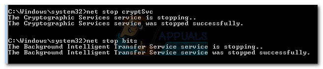 - First, we’ll need to stop BITS, Cryptographic, MSI INstaller and the Windows Update Services. To do this, insert the following commands into Command Prompt and press Enter after each of them: