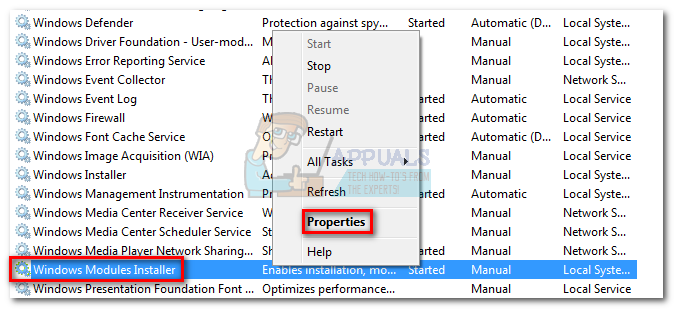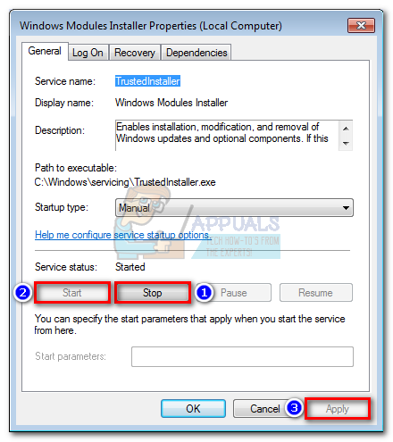 Method 2: Restarting Windows Module Installer service (trustedinstaller.exe)
