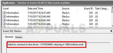 June 23, 2018DbxSvc ‘Failed to connect to the driver’