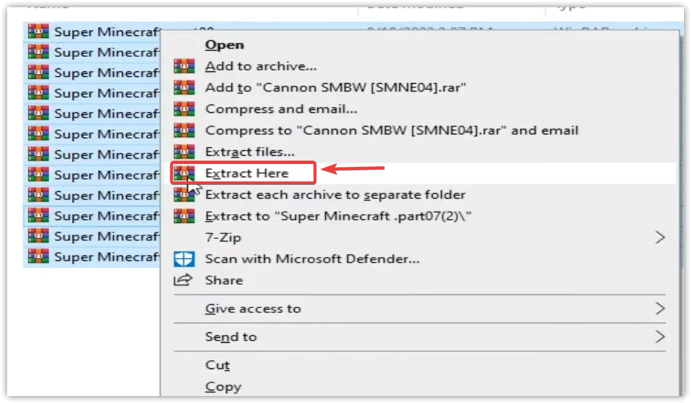 - Right-click the first file in the series (usually .rar or part1.rar) and select Extract Here or Extract to Folder.