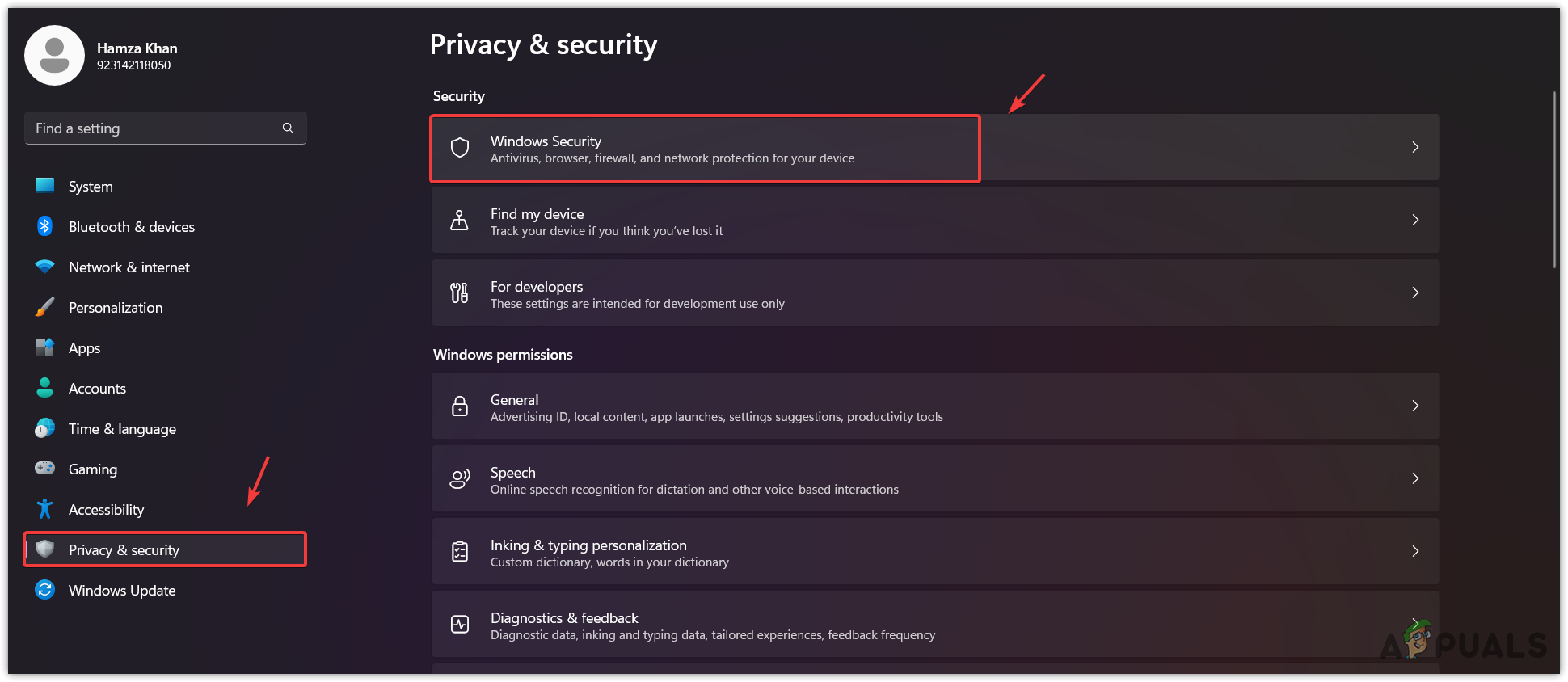- Go to Privacy & Security from the left pane.