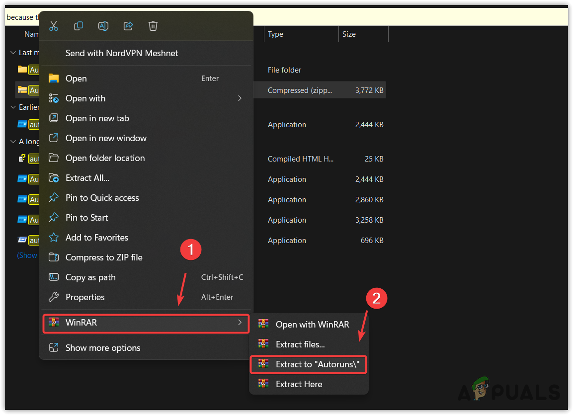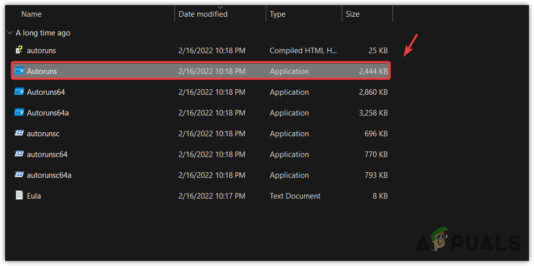 - Once the folder is extracted, navigate into the folder and run the Autoruns application.