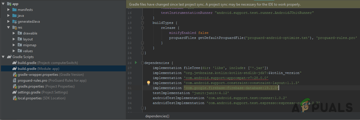 12. Click on Gradle Scripts, a menu on the left side of the screen. Then select built. gradle (Module: app). Now in the code, search for the version of the Real-Time database and replace it by the new one.