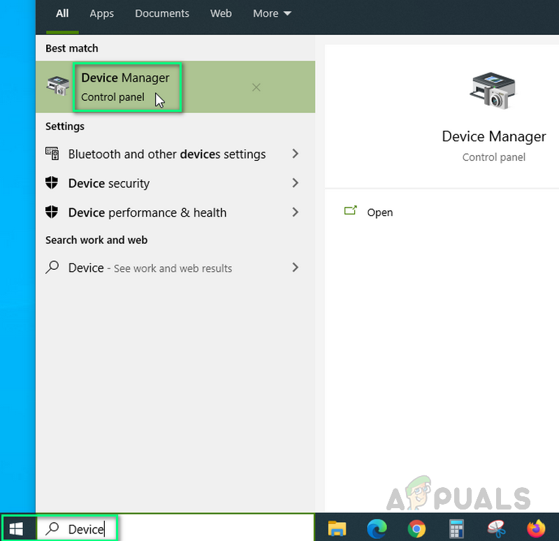 - Click Start, type Device and select Device Manager.