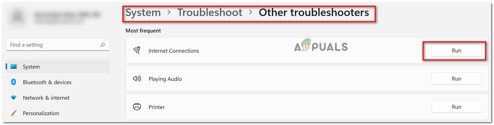 - Then, go to System > Troubleshoot > other troubleshooters.
