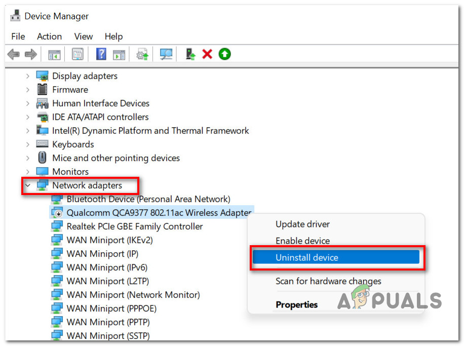 Uninstalling the network adapter. - After that, restart your PC. The driver will automatically be installed as you restart.
