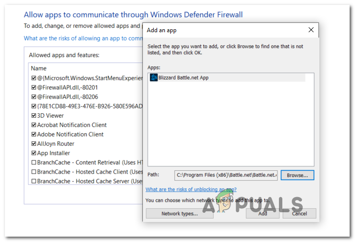 Adding the two entries to the list of allowed apps Note: The default location of the Battle.net executable is C:\Program Files (x86 / x32)\Battle.net