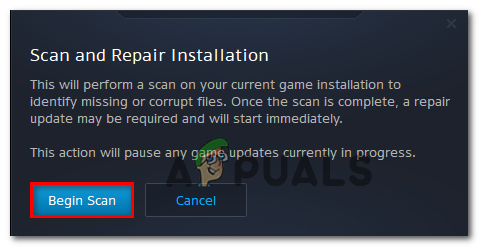 Triggering a Scan and Repair on Word of Warcraft inside Battle.net app - At the confirmation prompt, click on Begin scan and wait patiently until the operation is complete.